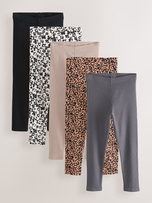 Animal/Neutral Ribbed Leggings 5 Pack (3-16yrs)