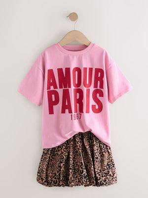 Animal/Pink Oversized T-Shirt and Bubble 100% Cotton Skirt Set (3-16yrs)