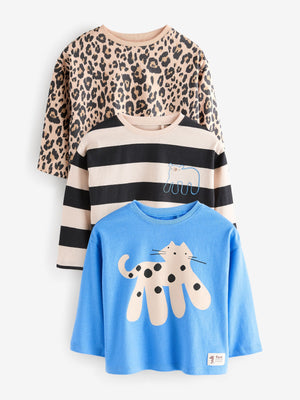 Animal Print Blue Long Sleeve Top 3 Pack (3mths-7yrs)