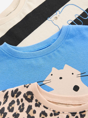 This 3-pack of long sleeve t-shirts are made from pure cotton for a comfortable feel, featuring a striped, animal print and cat graphic print design, perfect for seasonal layering. 3-pack Regular fit 100% cotton Woven tab Machine washable. 3 x T-shirt 100% Cotton. Country of Origin: Bangladesh