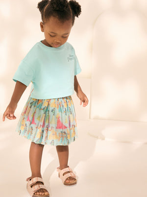 This adorable 2-piece set is perfect for your little Disney princess, featuring a pure-cotton t-shirt with a crewneck collar and short sleeves, alongside a printed mesh skirt with licensed graphic prints of their favourite characters. 2-piece set 100% cotton t-shirt Crewneck collar Disney Princess prints Mesh skirt Elasticated waistband Machine washable. T-shirt 100% Cotton. Skirt Mesh 100% Recycled polyester. Lining 100% Recycled polyester. Inner 92% Cotton, 8% Elastane. Country of Origin: Sri Lanka