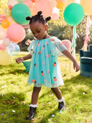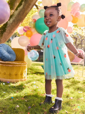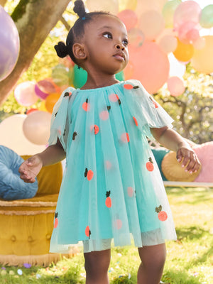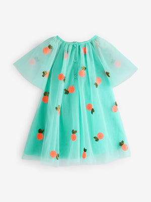 Spruce up her summer styling with this mesh dress. In a flowy silhouette with cute sequin motifs and pretty angel sleeves, this dress is fully lined and complete with button-back fastening. Mesh fabric Sequin motifs Angel sleeves Button-back fastening Main 100% Nylon. Lining 100% Polyester. Country of Origin: India