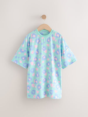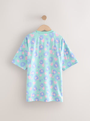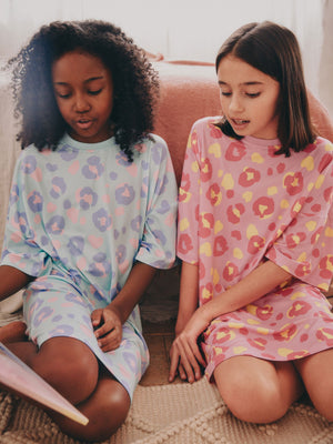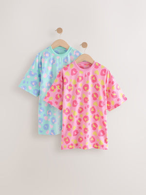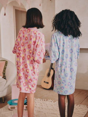 Aqua/Pink Leopard Print Nighties 2 Pack (3-16yrs)