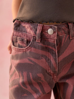 Berry Zebra Print Wide Leg Jeans (3-16yrs)