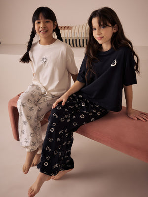 Black/Ecru Joggers Pyjamas 2 Pack (3-16yrs)