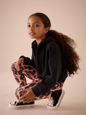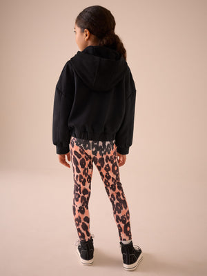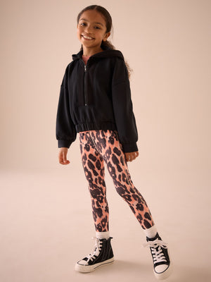 Black Half Zip Hoodie And Animal Sports Leggings Set (3-16yrs)