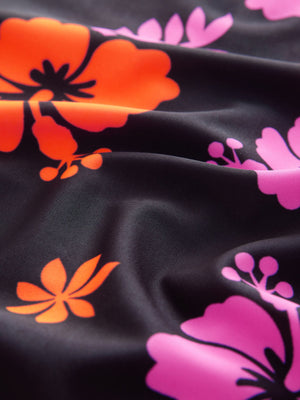 This all-in-one black and pink tropical print swimsuit provides extra coverage to help protect her from the sun, featuring a zip fastening to the front, long sleeves and a high collar. All-in-one Zip fastening Long sleeves High collar Machine washable. Main 82% Recycled polyester, 18% Elastane. Lining 92% Recycled polyester, 8% Elastane. Country of Origin: China This fabric will provide protection against solar ultraviolet radiation. It has been independently tested and given a UPF rating of 50+ which blocks more than 97.5% of UV rays. Important Advice: • Sun exposure causes skin damage • Only covered areas are protected • Always use a high protection factor sunscreen on any exposed areas of skin • The protection offered by this fabric may be reduced with use or if stretched or wet • Always rinse in fresh water after each use • Young children should be kept in the shade between 11 and 3 • Don't forget your hat and sunglasses. • Fabric provides UVA +UVB protection from the sun.