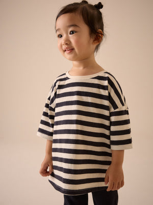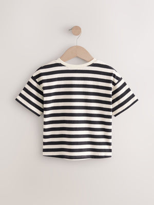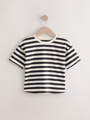 This short sleeve t-shirt is made from pure cotton with a stylish boxy fit, featuring a black and white striped print, finished with a crewneck collar. 100% cotton Boxy fit Short sleeves Crewneck collar Machine washable. 100% Cotton. Country of Origin: Bangladesh