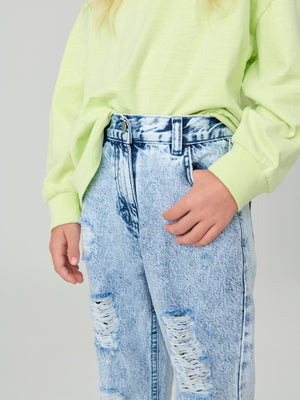 Bleach Wash Mom 100% Cotton Jeans (3-16yrs)