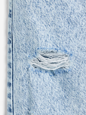 These stylish bleach wash jeans are a go-to essential for easy styling, featuring a comfortable mom fit with a straight leg, crafted from pure cotton denim. The jeans have a vintage-look with a 5-pocket design and on-trend distressing to the legs. Mom fit Straight leg 100% cotton Distressed finish 5-pocket design Machine washable. 100% Cotton. Country of Origin: Pakistan
