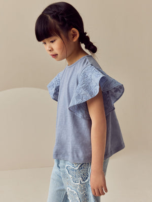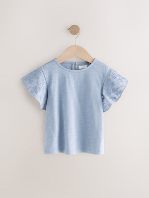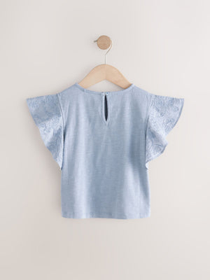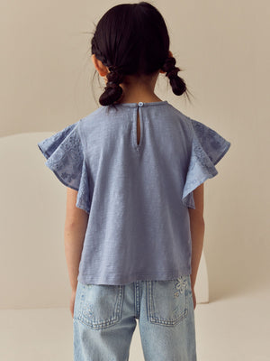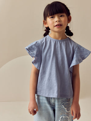 Blue Cornelli Frill Sleeve 100% Cotton T-Shirt (3-16yrs)