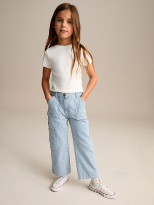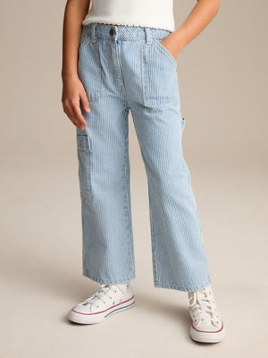 Blue Denim 100% Cotton Straight Leg Stripe Jeans (3-16yrs)