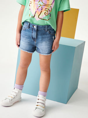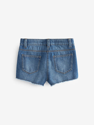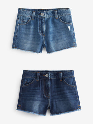Blue Denim 2 Pack Regular Length 100% Cotton Frayed Edge Shorts (3-16yrs)