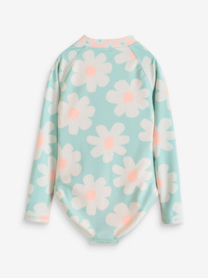 Blue Floral Long Sleeved Sunsafe Swimsuit (3-16yrs)