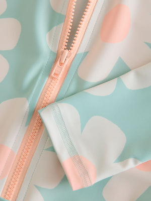 This all-in-one blue floral print swimsuit provides extra coverage to help protect her from the sun, featuring a zip fastening to the front, long sleeves and a high collar. All-in-one Zip fastening Long sleeves High collar Machine washable. Main 82% Recycled polyester, 18% Elastane. Lining 92% Recycled polyester, 8% Elastane. Country of Origin: China This fabric will provide protection against solar ultraviolet radiation. It has been independently tested and given a UPF rating of 50+ which blocks more than 97.5% of UV rays. Important Advice: • Sun exposure causes skin damage • Only covered areas are protected • Always use a high protection factor sunscreen on any exposed areas of skin • The protection offered by this fabric may be reduced with use or if stretched or wet • Always rinse in fresh water after each use • Young children should be kept in the shade between 11 and 3 • Don't forget your hat and sunglasses. • Fabric provides UVA +UVB protection from the sun.