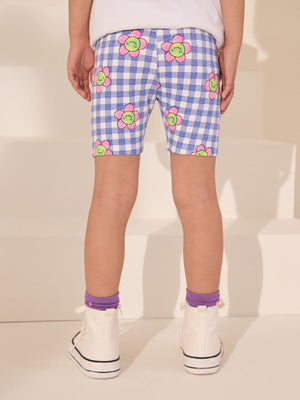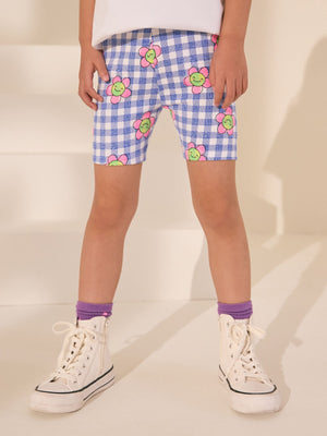 Blue Gingham Flower Cycle Shorts (3-16yrs)