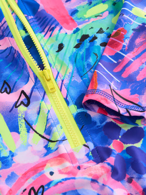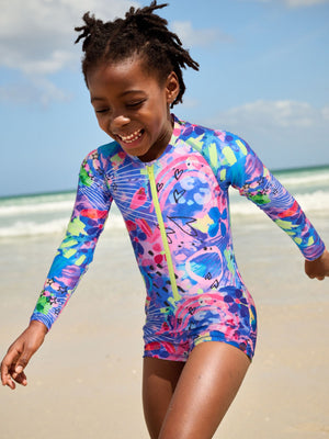 Blue Graffiti Long Sleeved Shortie Swimsuit (3-16yrs)