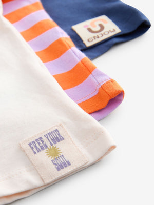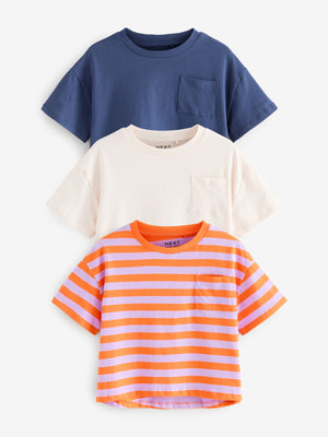 Blue/Orange/Ecru Boxy Stripe T-Shirts 3 Pack (3-16yrs)