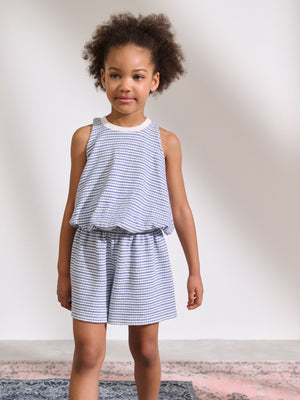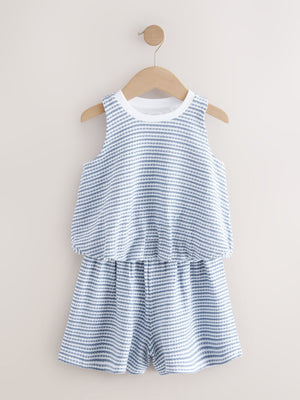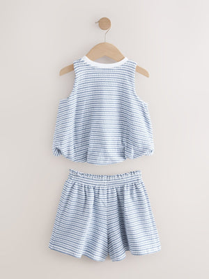 Blue Puffball Crochet 100% Cotton Top and Shorts Set (3-16yrs)