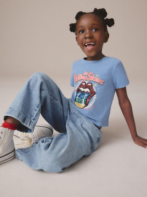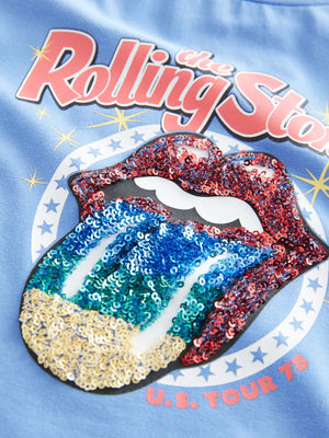 Blue Sequin Rolling Stones Band Boxy T-Shirt (3-16yrs)