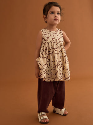 Brown/Cream Dress and Trousers Set (3mths-7yrs)