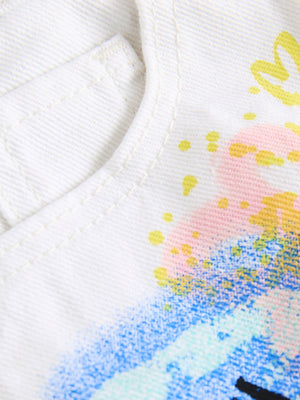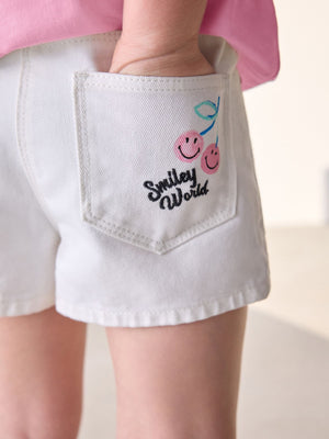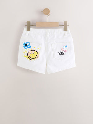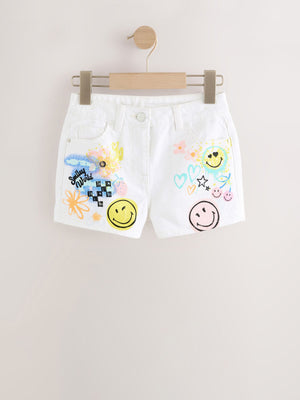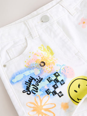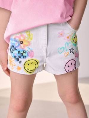 Chalk White Denim 100% Cotton Smileyworld Graffiti Shorts (3-16yrs)