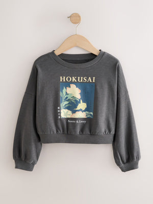 Charcoal Grey Hokusai License Long Sleeve 100% Cotton Sweat Top (3-16yrs)