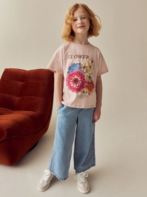 Refresh their rotation with this t-shirt and jeans set. Made for laidback days, this 2 piece set includes a graphic print t-shirt and wide leg jeans in a cotton rich blend. 2 piece set Cotton rich Wide leg jeans with drawstring waist Regular fit t-shirt Graphic print design T-shirt 100% Cotton. Trouser 80% Cotton, 20% Viscose. Country of Origin: Bangladesh