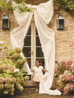 Get her sunshine ready with our embroidered white summer dress. In a lightweight cotton, this gorgeous frock is adorned in floral embroidery with angel sleeves and frill detailing for added charm. Fully lined with button-back fastening, she'll be wanting to wear this all season long. 100% cotton Embroidered design Angel sleeves Fully lined Button back fastening Main 100% Cotton. Lining 100% Cotton. Country of Origin: India