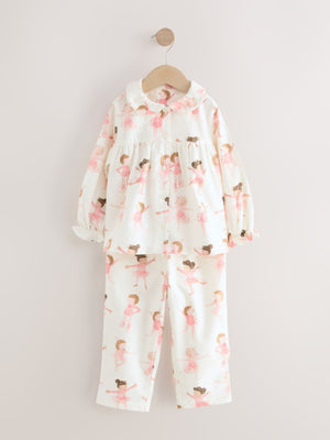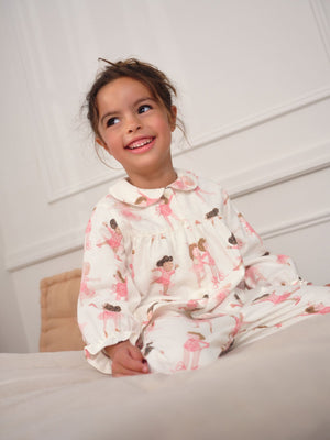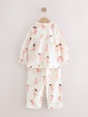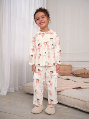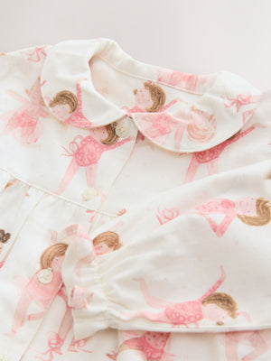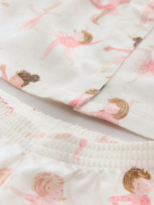 Ecru/Pink Ballerina Woven Button Through Pyjamas (9mths-10yrs)