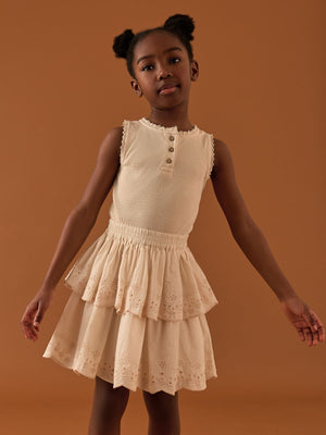 Ecru Tiered Skirt 100% Cotton Dress (3-12yrs)