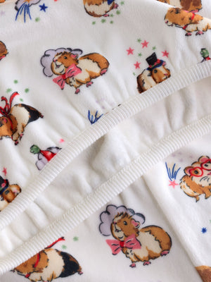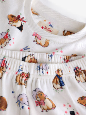 Snuggle them up in the Cosy Pyjamas from Cath Kidston. Crafted from a supersoft fabric, this indulgent set features a long sleeve top and elasticated bottoms that are coated in our Guinea Pig Party print where these furry companions steal the show! Each one radiating these little buddies' unique expressions and personalities as they're dressed in scarves, bowties and glasses. Machine washable. Pyjama Top and Pyjama Bottom 95% Recycled polyester, 5% Elastane. Country of Origin: China Warning: Keep away from fire and flames.