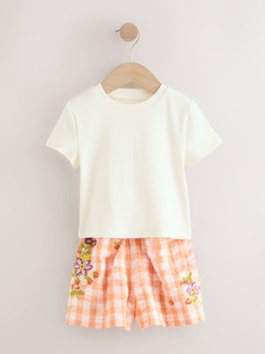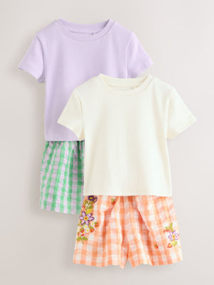 This 2-pack of pyjamas are made from a soft and comfortable cotton-blend fabric, featuring a short sleeve t-shirt with a crewneck collar and coordinating shorts with embroidered detailing, perfect for refreshing their sleepwear selection. 2-pack Cotton-blend fabric Short sleeve t-shirts Matching shorts Machine washable. 2 x Pyjama Top 95% Cotton, 5% Elastane. 2 x Pyjama Bottom 100% Cotton. Country of Origin: India Warning: Keep away from fire and flames.