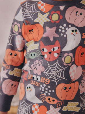Grey Ghost & Pumpkin Print Halloween Snuggle Pyjamas (9mths-12yrs)