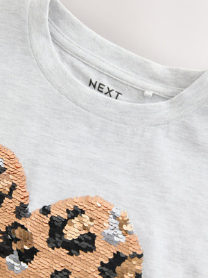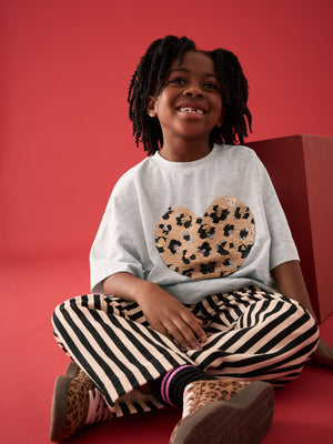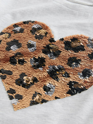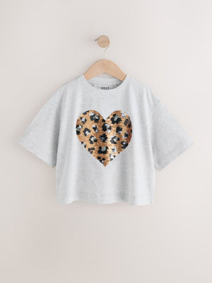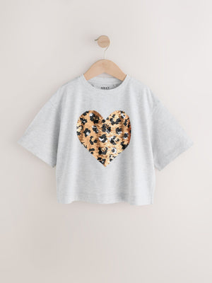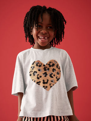 Grey Sequin Heart Print T-Shirt (3-16yrs)