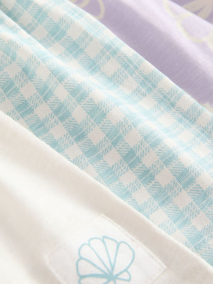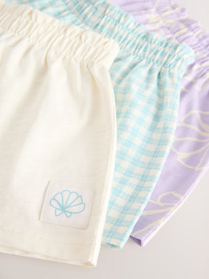 Stock-up for summer with this 3-pack of shorts, in pretty shell, check and plain designs made from pure cotton. She'll love the easy pull-on elasticated waistband, taking the fuss out of getting ready. 3-pack 100% cotton Elasticated waistband Machine washable. 3 x Shorts 100% Cotton. Country of Origin: Bangladesh