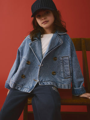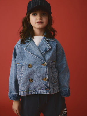 Mid Blue Denim 100% Cotton Trench Jacket (3-16yrs)