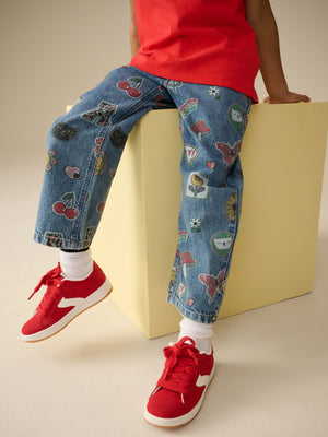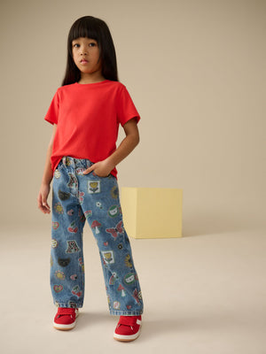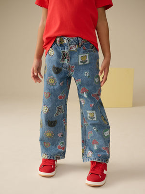 Mid Blue Printed Wide Leg Jeans (3-16yrs)