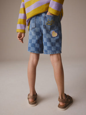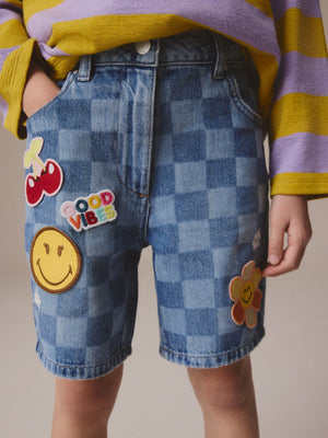 Add some fun to their wardrobe with these SmileyWorld® shorts. Made from 100% cotton, these mid-blue shorts feature a playful check print and a longer length for a trendy look. Perfect for casual outings, these shorts bring a touch of cheer to any day. SmileyWorld® Mid blue Check print Longer length 100% cotton 100% Cotton. Country of Origin: Bangladesh