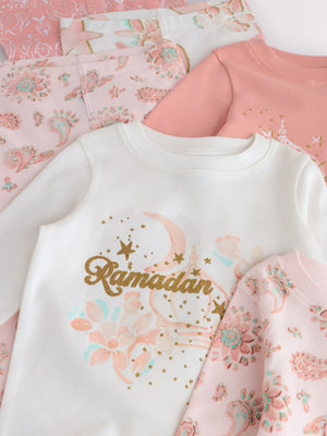 Celebrate the spirit of Ramadan in comfort with our Ramadan 3 pack pyjamas. Designed for cosy nights and peaceful mornings, this beautifully crafted sleepwear is perfect for family moments, suhoor, or relaxing after iftar. 3 pack pyjamas Long sleeved Ramadan designs Machine washable. 3 x Pyjama Top and 3 x Pyjama Bottom 100% Cotton. Country of Origin: Bangladesh Warning: Keep away from fire and flames.