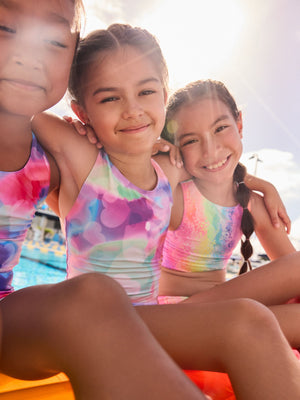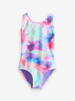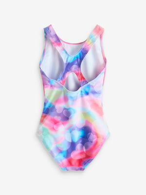 Get them ready to swim and splash with this multi-coloured sporty swimsuit that features a new cross-back strap design for comfort and ease of dressing. This swimsuit includes LYCRA Xtra Life fibre technology which is designed to provide long-lasting fit retention through resistance to chlorine degradation. Cross-back strap Fully lined Long life fabric Machine washable. Main 82% Recycled polyester, 18% LYCRA® XTRA LIFE™ elastane. Lining 92% Recycled polyester, 8% Elastane. Country of Origin: China LYCRA® Xtra Life™ fibre resists fit loss and fibre breakage caused by pool water and sunscreen, giving you long-lasting shape and fit.