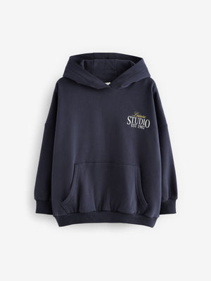 Amp up her casual look with our girls' cotton hoodie. In a classic pullover style, this pure cotton piece is elevated with a graphic print design for added fun. Complete with a kangaroo pocket, long sleeves and cuff hems. 100% cotton Regular fit Kangaroo pocket Long sleeves Graphic print Machine washable. 93% Cotton, 7% Recycled polyester. Country of Origin: Pakistan