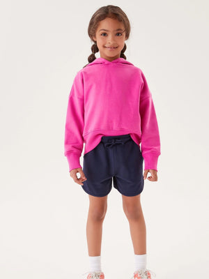 Practical and fashionable, our navy jersey shorts will be a summer staple in your little one's wardrobe. Made from soft cotton jersey, these comfy shorts have been designed with an adjustable drawstring waistband for the perfect fit and useful pockets. Team it with the matching zip-through hoodie, a T-Shirt and their favourite trainers for a great everyday look. Machine washable. 93% Cotton, 7% Polyester. Country of Origin: Pakistan