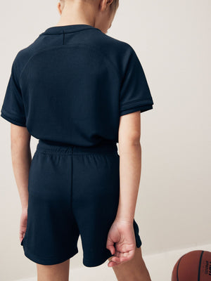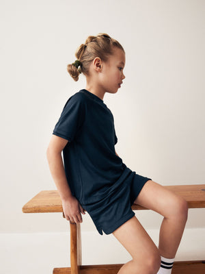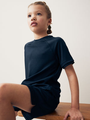 Made from a lightweight and breathable navy blue fabric, this sports top is a must-have for the PE kit and any physical activities, cut to a relaxed fit with a scoop neckline. Matching shorts sold separately. Relaxed fit Lightweight and breathable fabric Scoop neckline PE kit essential Machine washable. 100% Recycled polyester. Country of Origin: Bangladesh