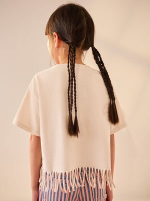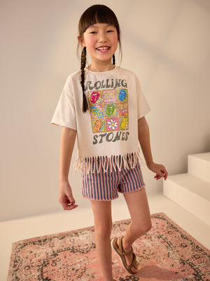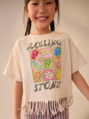 Neutral 100% Cotton Sequin Rolling Stones Fringe T-Shirt (3-16yrs)