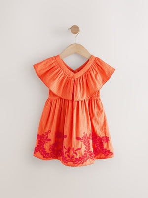 Orange Embroidered Summer Dress (3mths-10yrs)