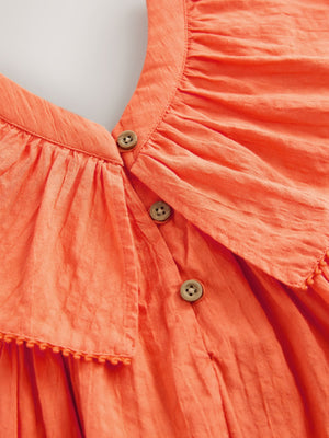 Get her sunshine ready with our orange embroidered summer dress. In a lightweight cotton, this gorgeous frock is adorned in floral embroidery with angel sleeves and frill detailing for added charm. Fully lined with button-back fastening, she'll be wanting to wear this all season long. 100% cotton Embroidered design Angel sleeves Fully lined Button back fastening Main 100% Cotton. Lining 100% Cotton. Country of Origin: India