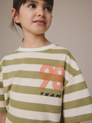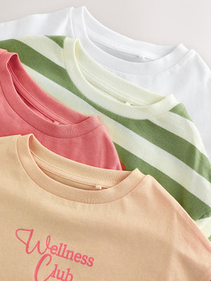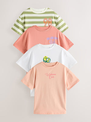 Orange/White/Green 100% Cotton Sports Slogan Oversized T-Shirts 4 Pack (3-16yrs)