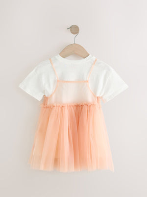 Peach Pink Short Sleeve Mesh Dress & T-Shirt Set (3mths-7yrs)