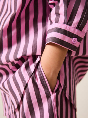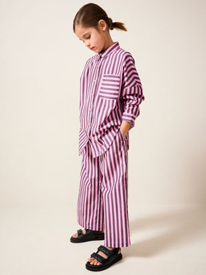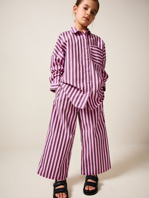 Pink and Chocolate 100% Cotton Stripe 100% Cotton Shirt and Trousers Set (3-16yrs)